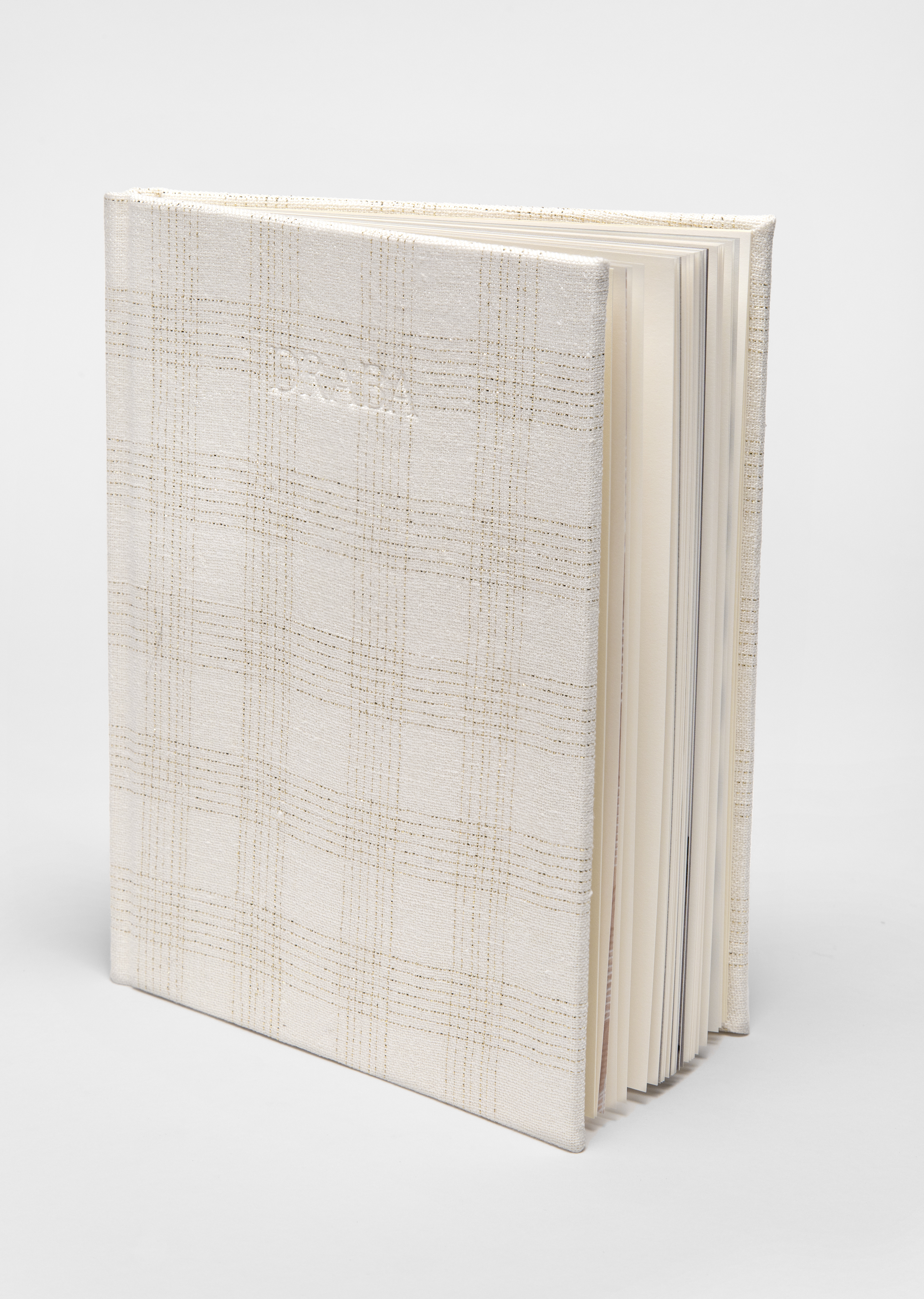 Hand Binding w/ linen and metallic yarn (plain weave, supplemental gold warp and weft by Marina Contro)