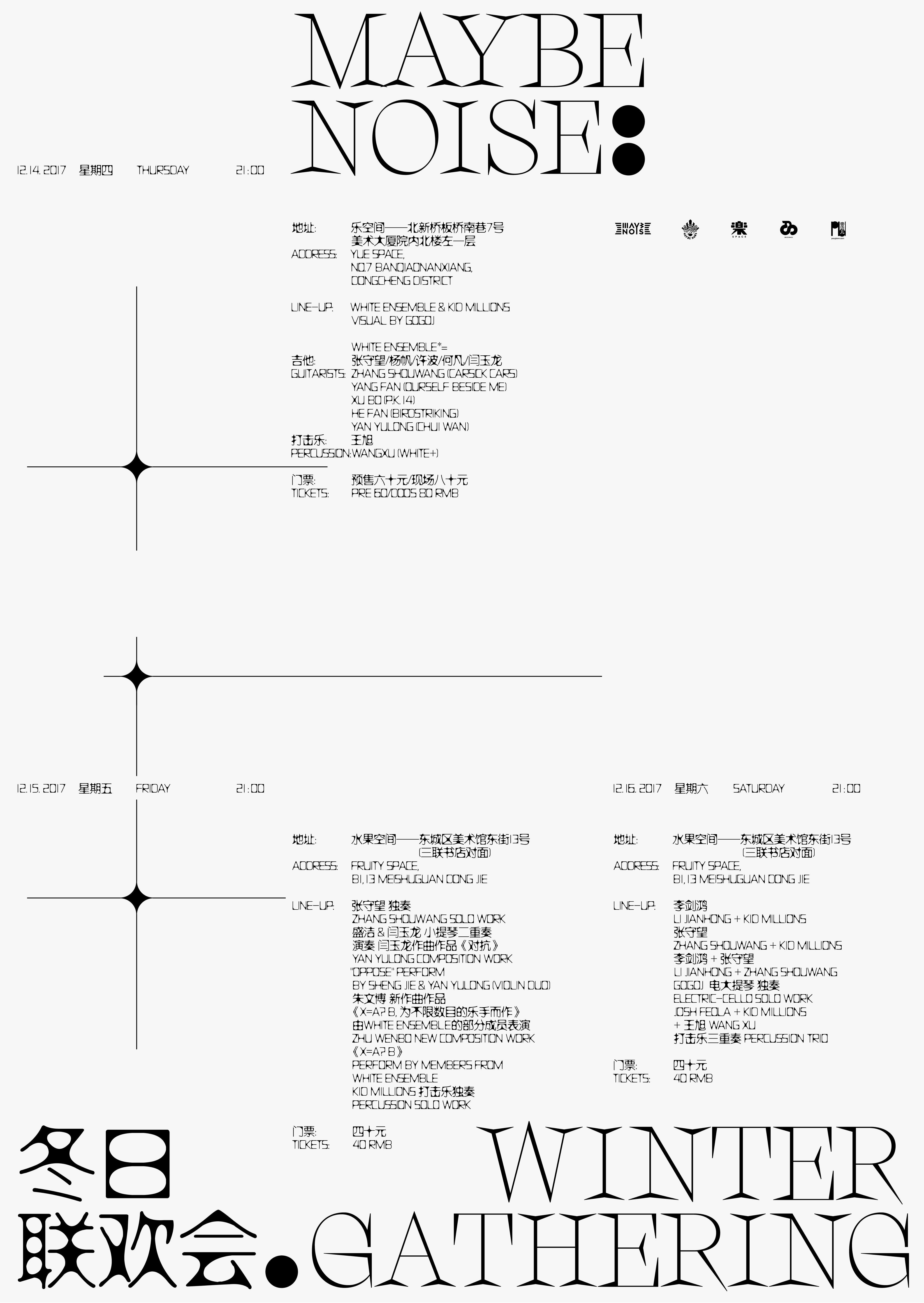 Poster design for Maybe Noise’s Winter Gathering held on December 14th—16th, 2017 at Yue Space & Fruity Space, Beijing.